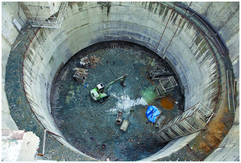 Pompa biriktirmeli santral inşaatı. 7 pompa deposu, 32m derinlik, 50m yükseklik.